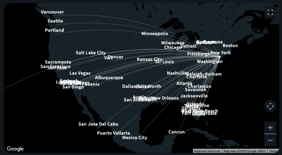 North America to London 1,790 Flights, 448,000 Passengers per Month