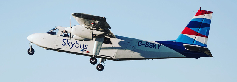 Skybus took over the London route in November 2025 under an interim arrangement following the bankruptcy of Eastern Airways. The airline had planned to introduce an ATR72 for the service but currently operates the route using a DHC-8-Q400 wet-leased from Universal Air and flown under the GR code of Aurigny Air Services.