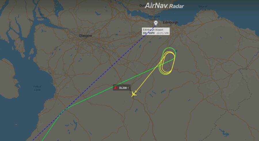 A Delta Air Lines flight from New York to Scotland was forced to divert after an IT failure halted air traffic operations at Edinburgh Airport. Delta Flight 208 departed New York on Thursday evening and was scheduled to land around 9 a.m. local time after its six-hour crossing of the Atlantic. But upon arrival, the Boeing 767 was unable to land and spent about 20 minutes circling south of Edinburgh before diverting to Dublin, where it touched down shortly after 10 a.m.
